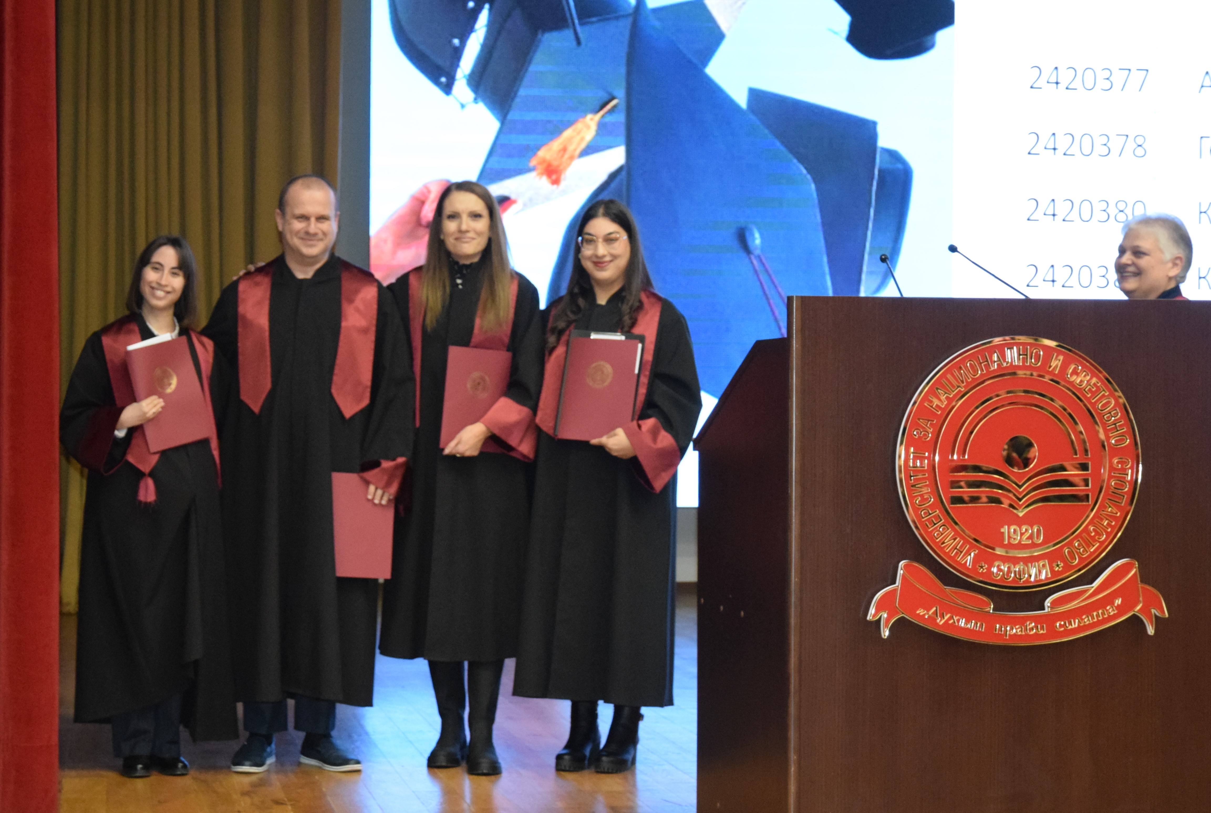 | Магистрите Гергана Гърбева, Александър Аврамов, Кристина Нешева от специалност „Публична администрация“ получиха своите дипломи |
