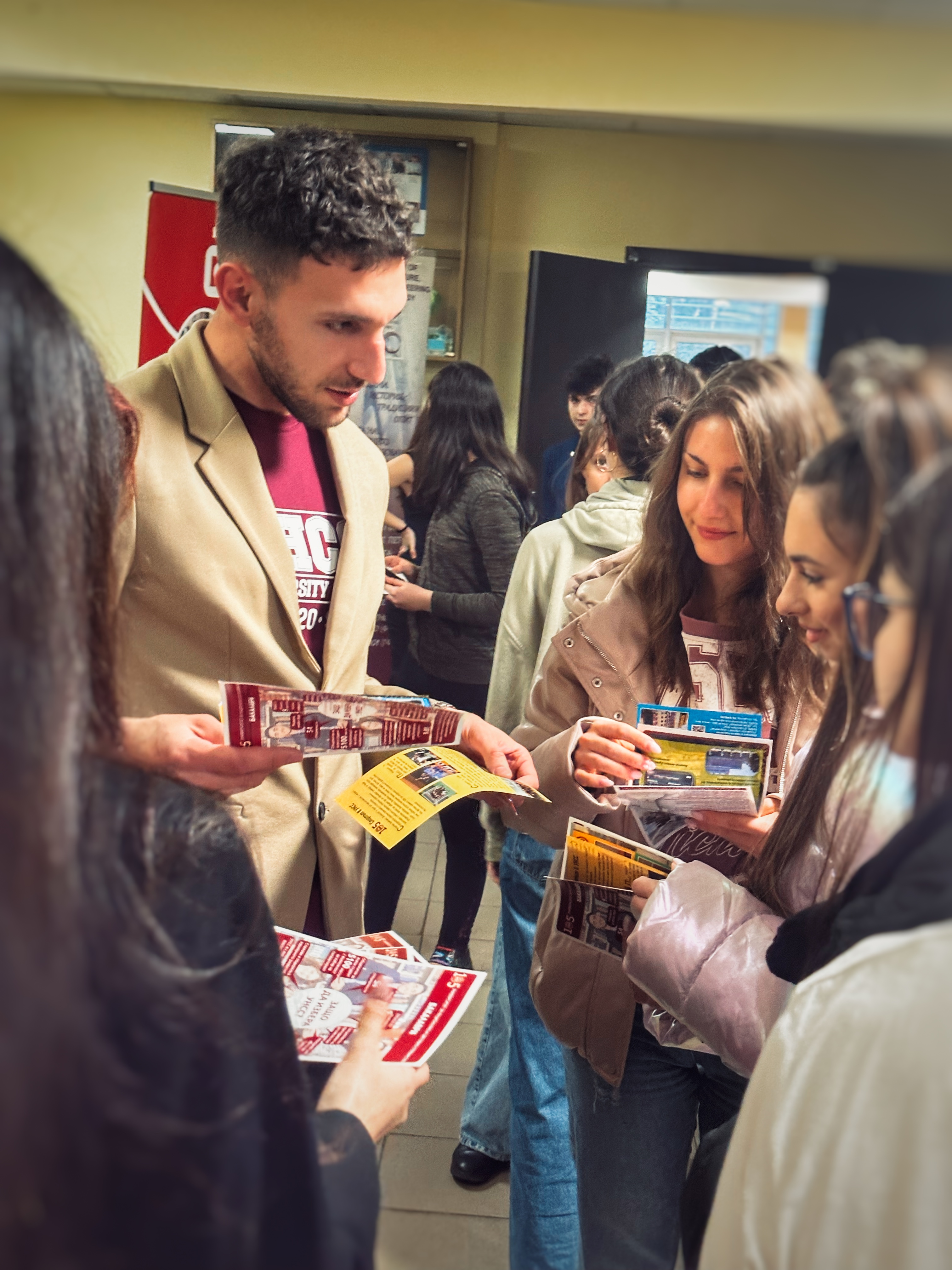 Представители на нашия университет се включиха в събитие, организирано по инициатива на учениците от Първа английска гимназия, на което бяха представени различни образователни програми и възможностите за академично развитие в България. В срещите с учениците участваха още пет водещи български университета – Софийския университет „Св. Климент Охридски“, Нов български университет, Университет по архитектура, строителство и геодезия, Американския университет в България и Медицинския университет – София. Интересът сред учениците от 11. и 12. клас беше много голям, като повечето от тях посетиха щандовете с конкретни въпроси за бъдещото си образование, реализация и студентска среда.