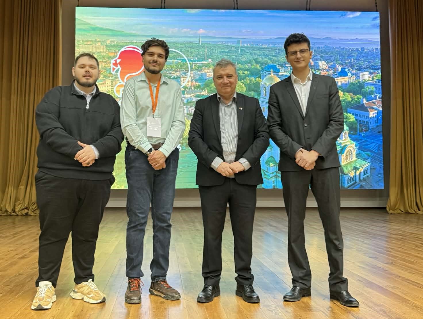 | Николай Ангелов, Максим Зангов, ректорът на УНСС проф. д-р Димитър Димитров и Румен Маринов |