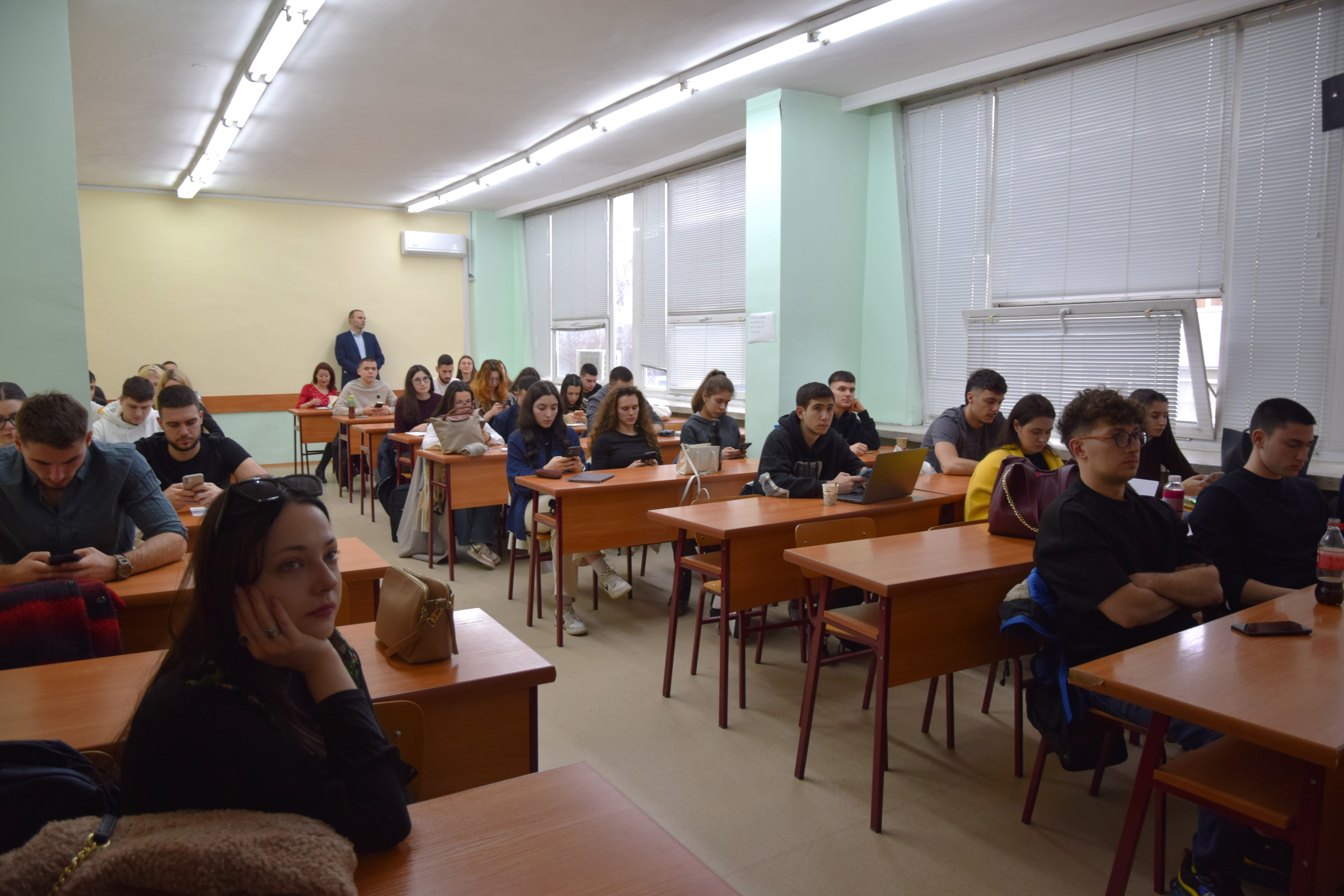 Официално приветствие към участниците отправи доц. д-р Янко Христозов, зам.-ректор по международната дейност. Той поздрави присъстващите от името на ректора проф. д-р Димитър Димитров и подчерта: „За мен е лична кауза да развиваме финансовото и икономическото мислене на младите хора – независимо от тяхната специалност. Радвам се, че днес виждам толкова много мотивирани студенти, защото именно партньорството между университета и бизнеса дава реална стойност на образованието и увереност за бъдещата ви професионална реализация“. Доц. Христозов отбеляза значението на устойчивото партньорство с Пощенска банка, като благодари на ръководството на банката. В рамките на своето изказване той представи и актуален икономически анализ, илюстриращ динамиката в развитието на страната през последните години, като посочи, че ако през 2000 г. парите в обръщение в България са били около 2 млрд. лв., то през 2025 г. те вече достигат 30 млрд. Спестяванията на домакинствата и бизнеса в банковата система надхвърлят 100 млрд. лв., а банковите печалби за последната година са над 3 млрд. лв. В контекста на дебата за присъединяването към еврозоната той призова студентите да не търсят причините за високите цени с въвеждането на еврото, а да анализират по-задълбочено макроикономическите фактори – ръста на доходите, разширяването на икономиката и увеличеното потребление.