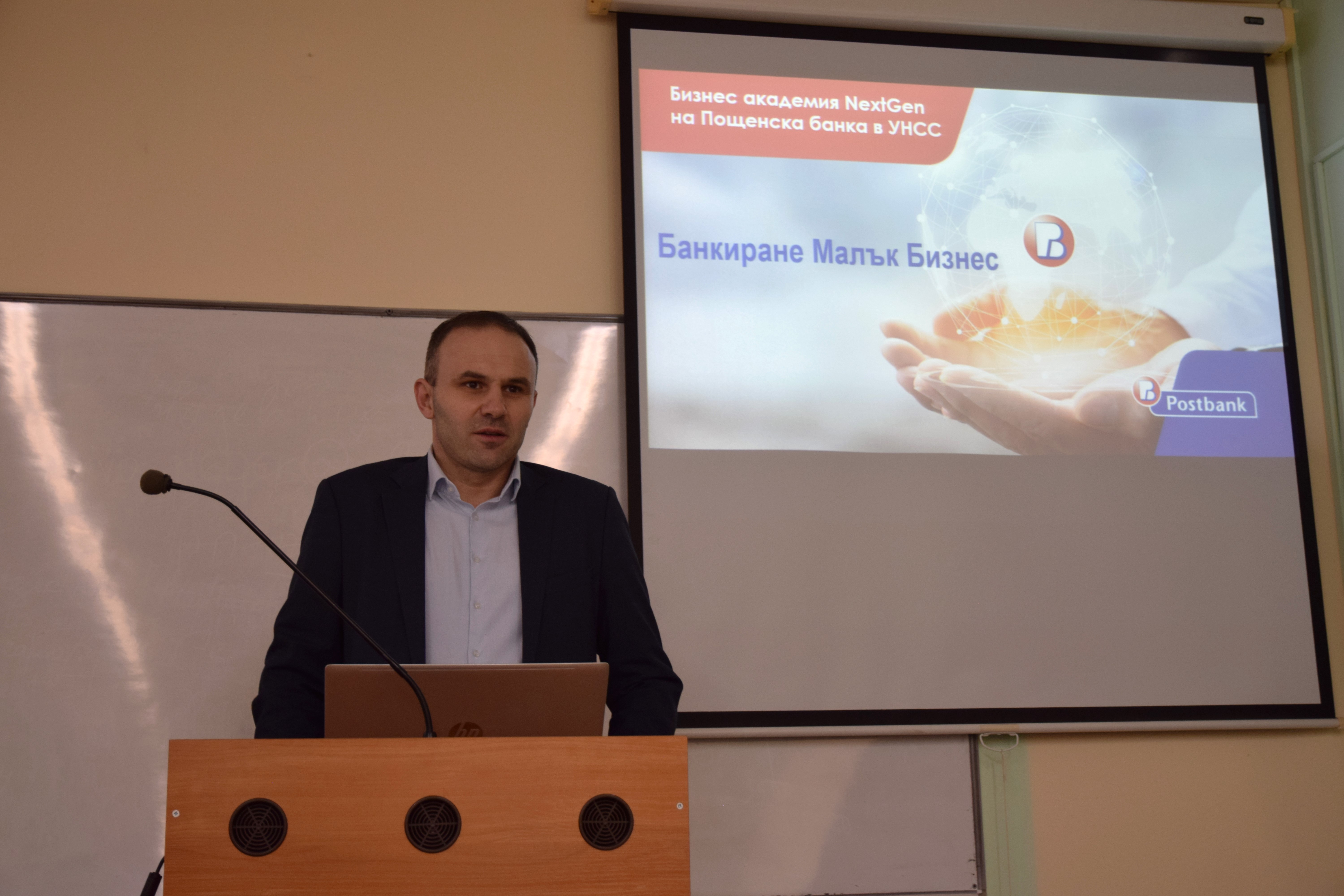 Мартин Станоев, част от екип „Човешки ресурси“ на Пощенска банка и студент в УНСС, запозна студентите с предстоящите активности в рамките на Бизнес академията. Той изрази удовлетворението си, че работи за компания, която инвестира в развитието на младите хора и активно подкрепя академичната общност. Мартин Станоев направи кратка ретроспекция на първото издание на академията, отбелязвайки че след края й 10 от най-добре представителите се участници са получили атрактивни стипендии. Той представи и обновената програма на NextGen Vol. 2, която съчетава традиции и иновации и включва голямо разнообразие от теми, практически задачи и бизнес симулации. Участниците във второто издание също имат възможност да спечелят стипендии. Академията ще завърши през април с официално награждаване на стипендиантите.