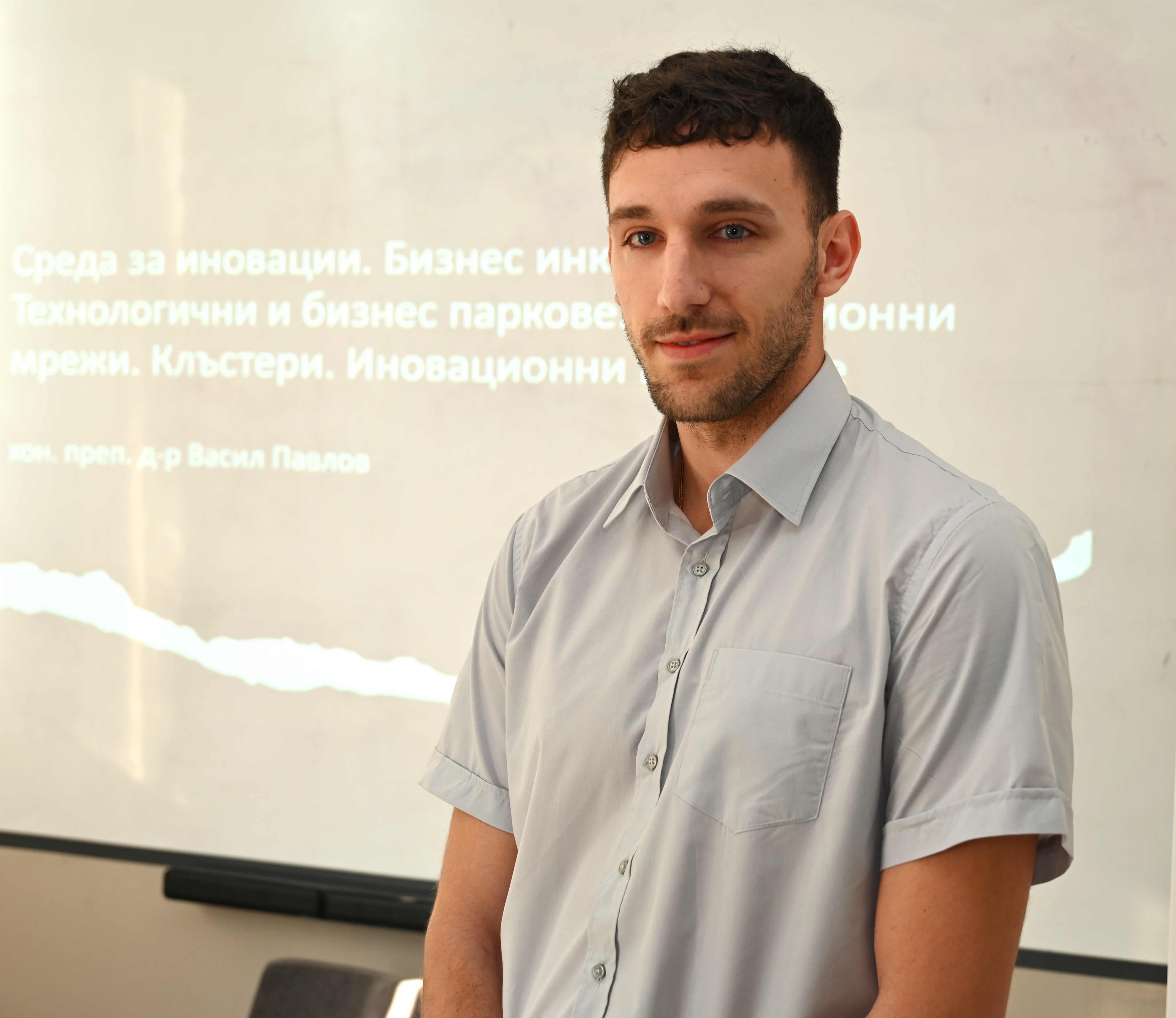 Гост лектор бе д-р Васил Павлов, хоноруван преподавател в катедра „Национална и регионална сигурност“ по дисциплините „Управление на инвестициите в сектора за сигурност и отбрана“ и „Иновации“. В рамките на лекционната част той представи ключови елементи от иновационната екосистема и практическата им роля за развитието на малките и средните предприятия.