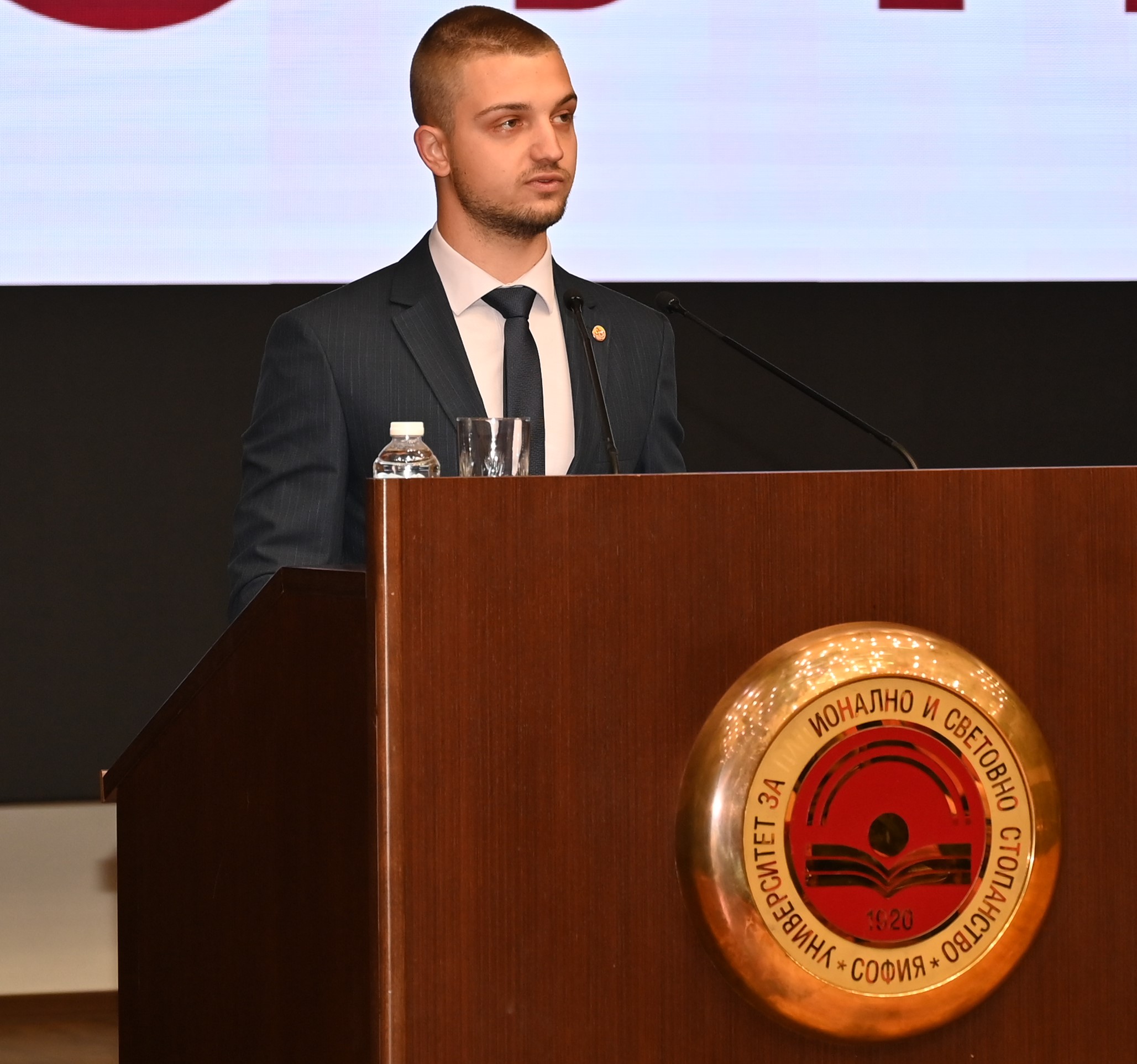 Калоян Стефанов,председател на Студентския съвет20 май 2025 г. аула „Максима“Тържествено събрание |