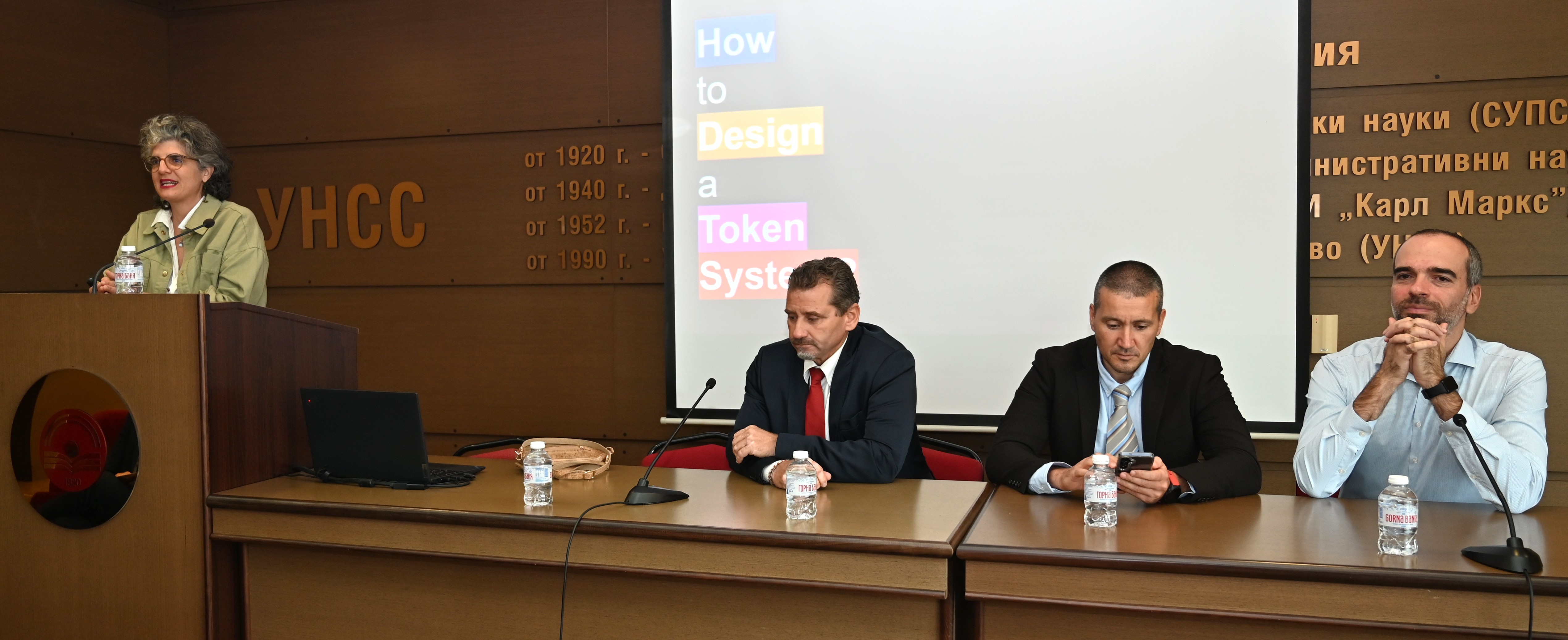 A public lecture by Shermin Voshmgir – an internationally recognized expert, author of the world bestseller Token Economy and lecturer in the field of cryptoeconomics, token systems and Web3 - was held in the Ceremonial Hall of UNWE. She is the co-founder and former Director of the Research Institute for Cryptoeconomics at the Vienna University of Economics. She is also the founder of the Token Kitchen organization which deals with the practical design of token systems and governance models.