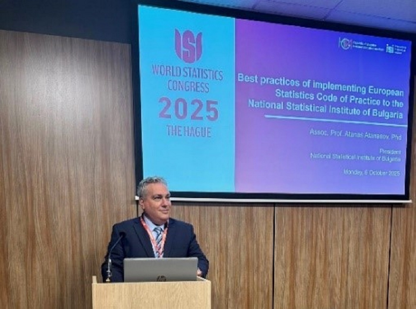 The Chairman of the National Statistical Institute /NSI/ and lecturer at the UNWE Statistics and Econometrics Department Assoc. Prof. Atanas Atanasov participated in the 65th World Statistics Congress which took place in early October 2025 in Hague, Netherlands.