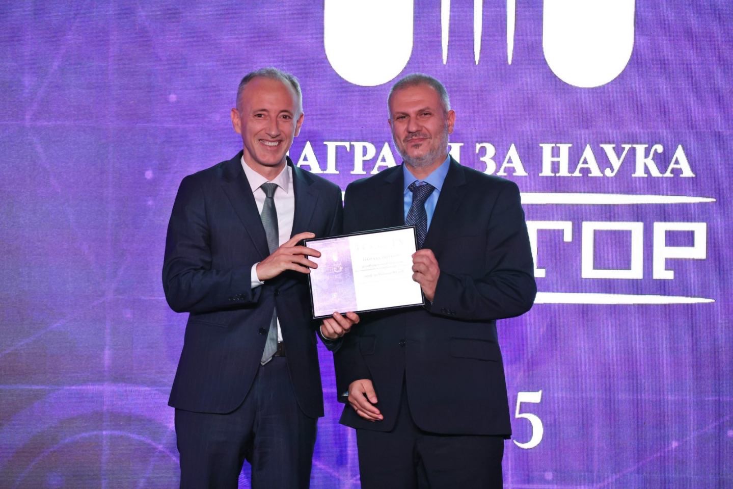 The grand prize Pythagoras for overall contribution to science in 2025 was awarded to Prof. Radostina Stoyanova from the Institute of General and Inorganic Chemistry at the Bulgarian Academy of Sciences, and the prize in the category Science Communication was awarded to Prof. Hristo Pimpirev.