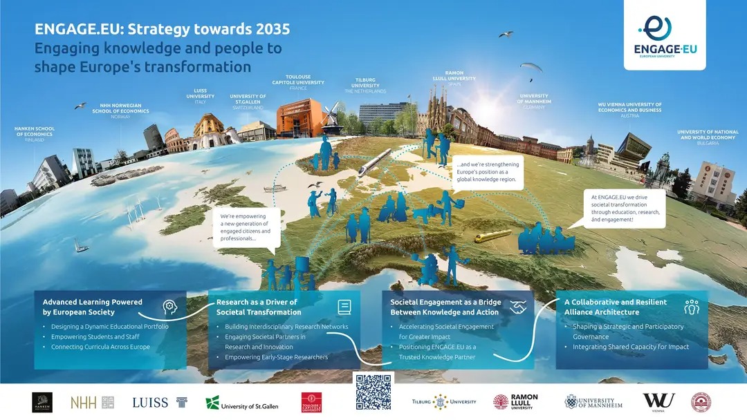 The UNWE was a key participant in the preparation of the ENGAGE.EU Strategy until 2035 which envisages an ever stronger integration of its members into a common system focused on joint learning, research and social influence.