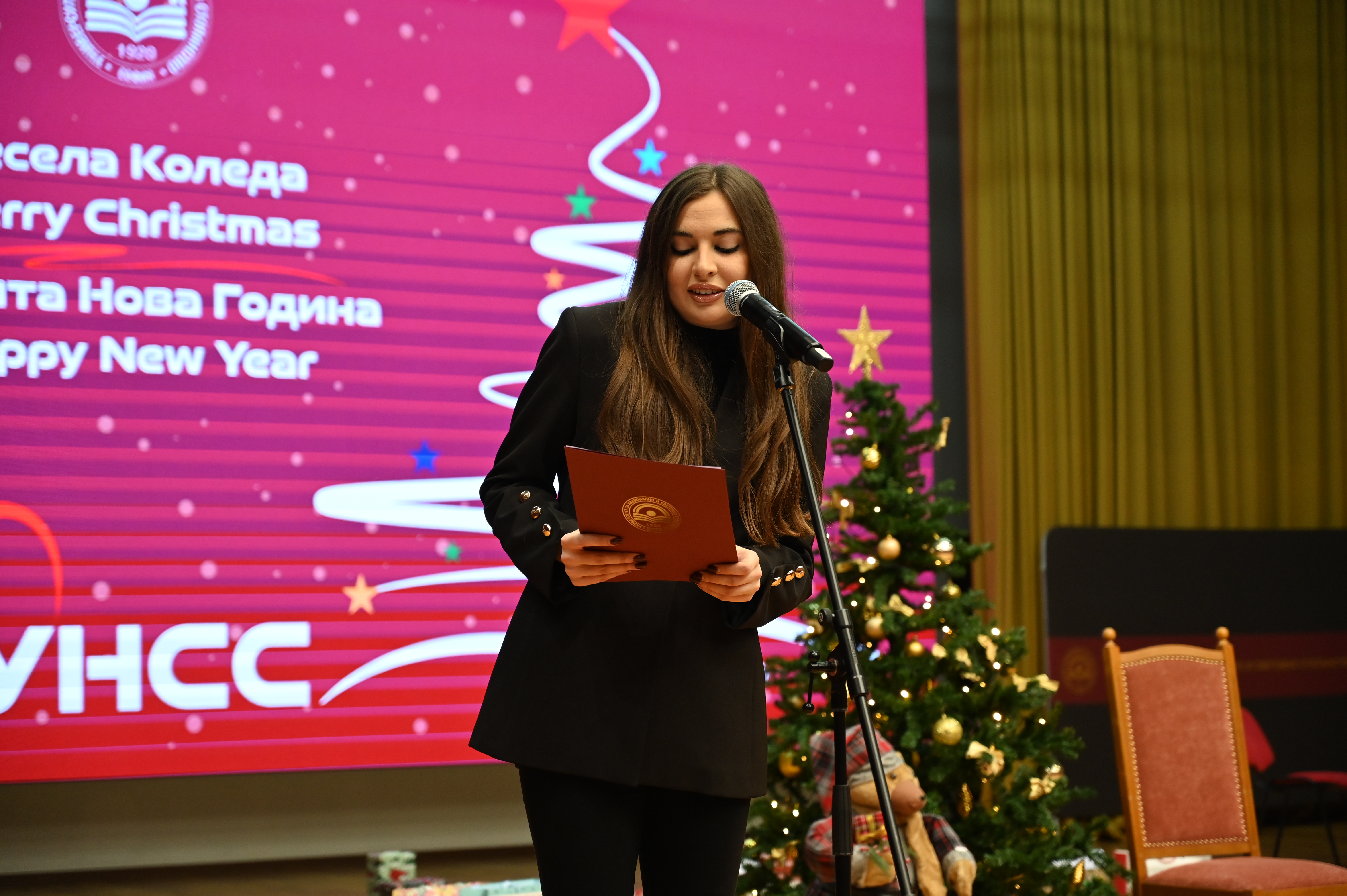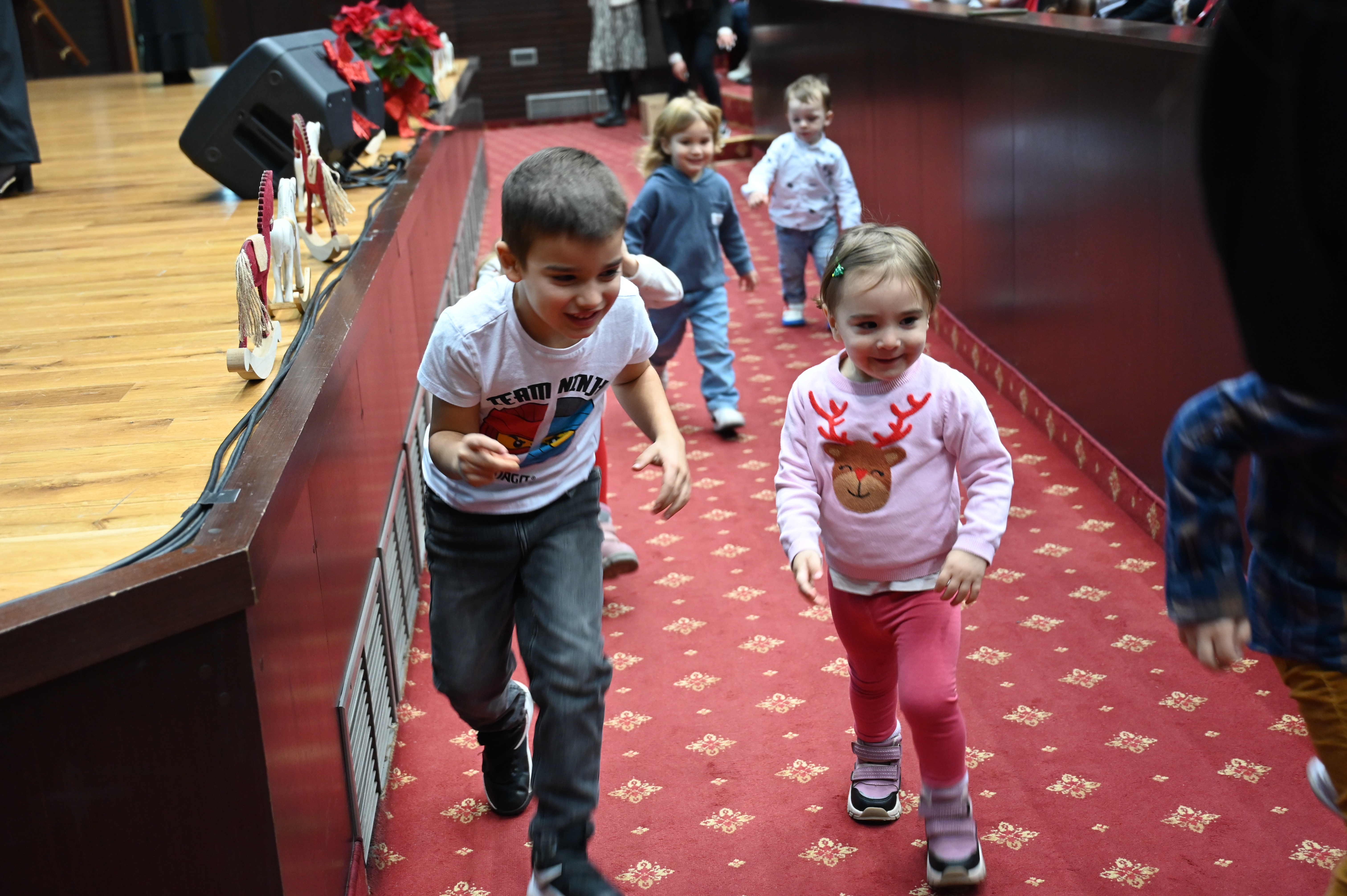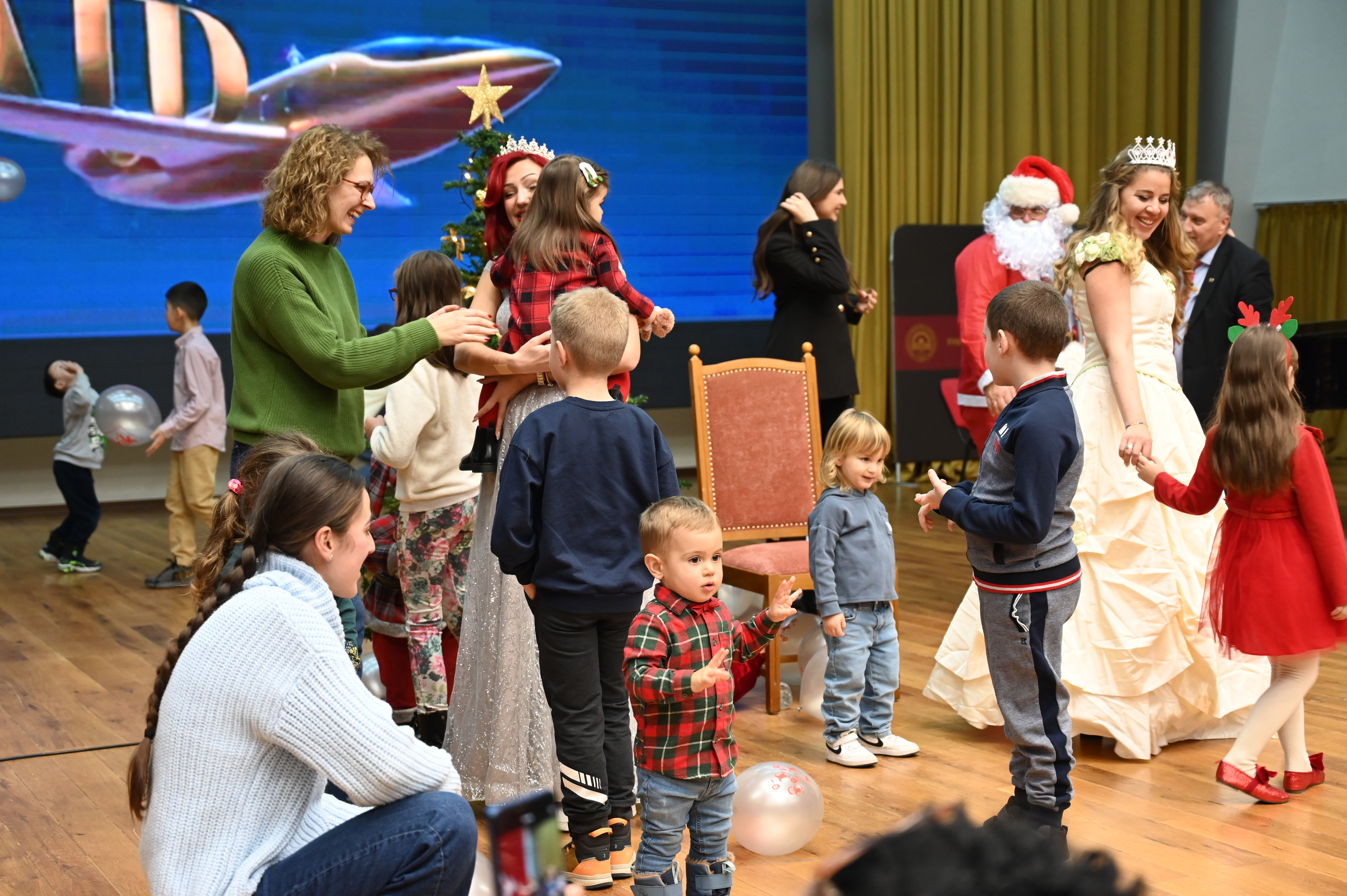 The Rector Prof. Dr. Dimitar Dimitrov expressed his joy at seeing so many smiling and happy faces and outlined the festive atmosphere in which all the children were awaiting their Christmas gifts. He emphasized that the end of the year is a time for assessment and pointed out that the past year had been a good and successful one for the academic community of UNWE. He also added that "the University strives to create more and more such warm and unifying experiences for children and their parents, because it is through them that the true Christmas spirit is felt". The Rector greeted all the attendees on the upcoming holidays and wished them good health, family harmony and many happy moments in the following years.
